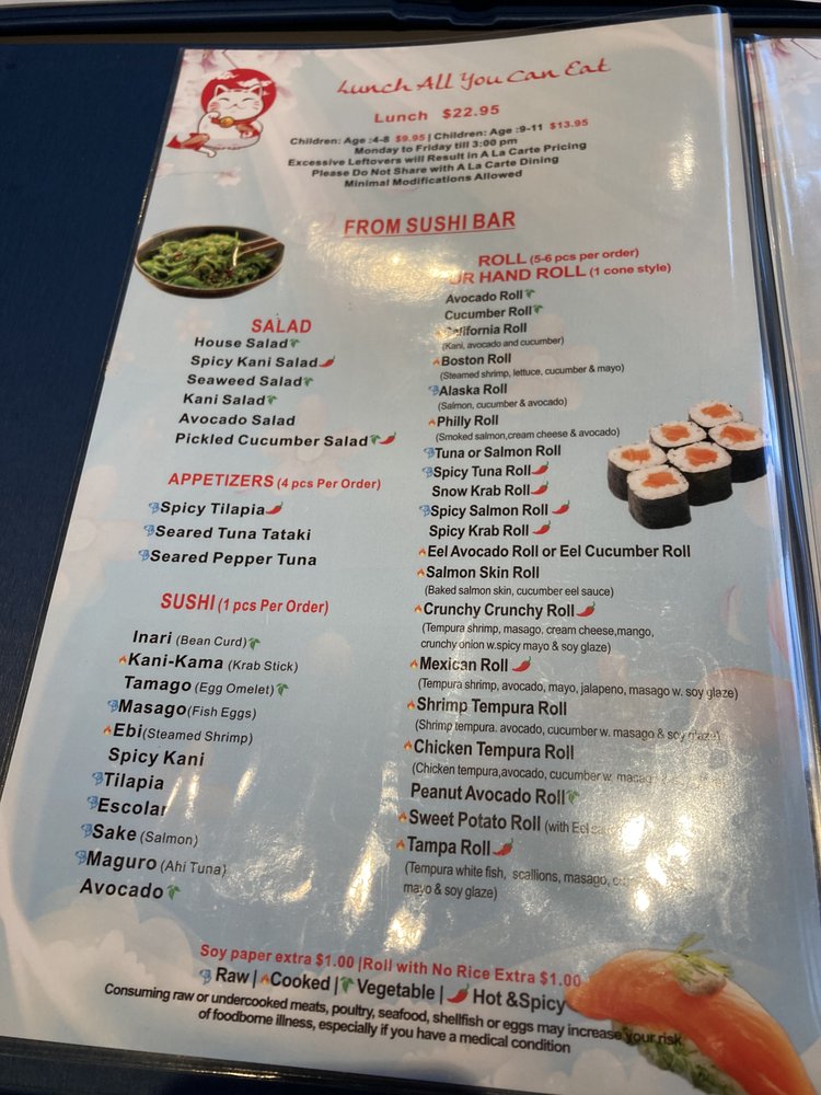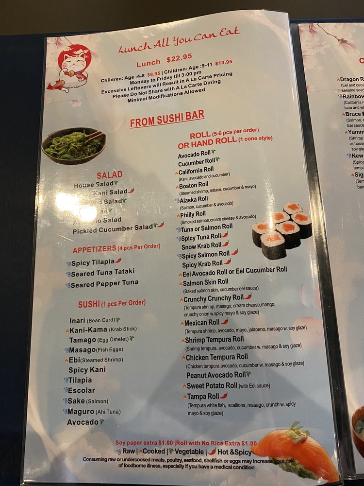 Crazy Sushi and Hibachi offers a diverse menu of fresh sushi and hibachi options. Located in Wesley Chapel, FL, this sushi bar provides a casual yet classy dining experience with a range of amenities including outdoor seating, full bar, and even Wi-Fi. Customers rave about the all-you-can-eat sushi deal for $33, praising the quality and variety of options available. The attentive service from staff members like Julian and Eric adds to the overall positive dining experience. The sashimi, particularly the yellowtail, receives high praise for its freshness and flavor. While some find the giant projector screen distracting, the overall consensus is that Crazy Sushi and Hibachi is a must-visit spot for sushi lovers looking for good value and quality.